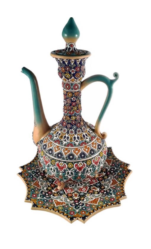 گلاب پاش و بشقاب مینا کاری شده جنس سفال